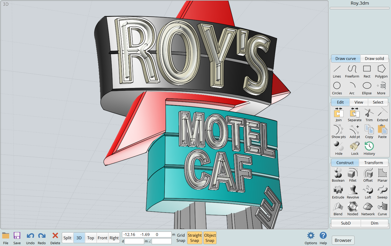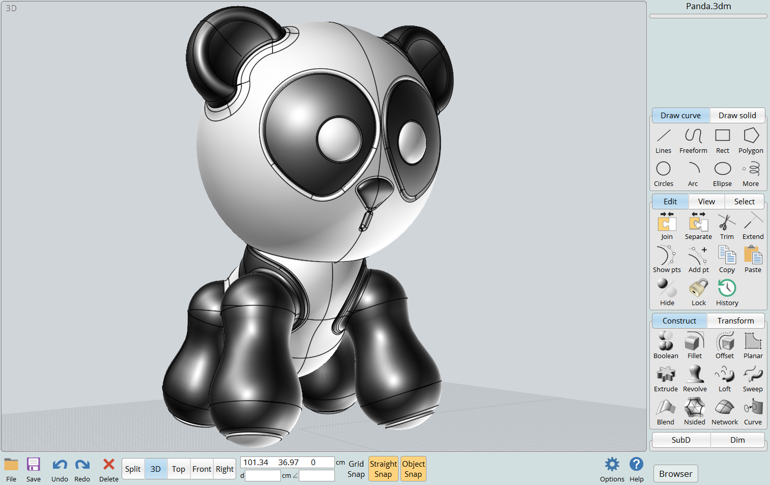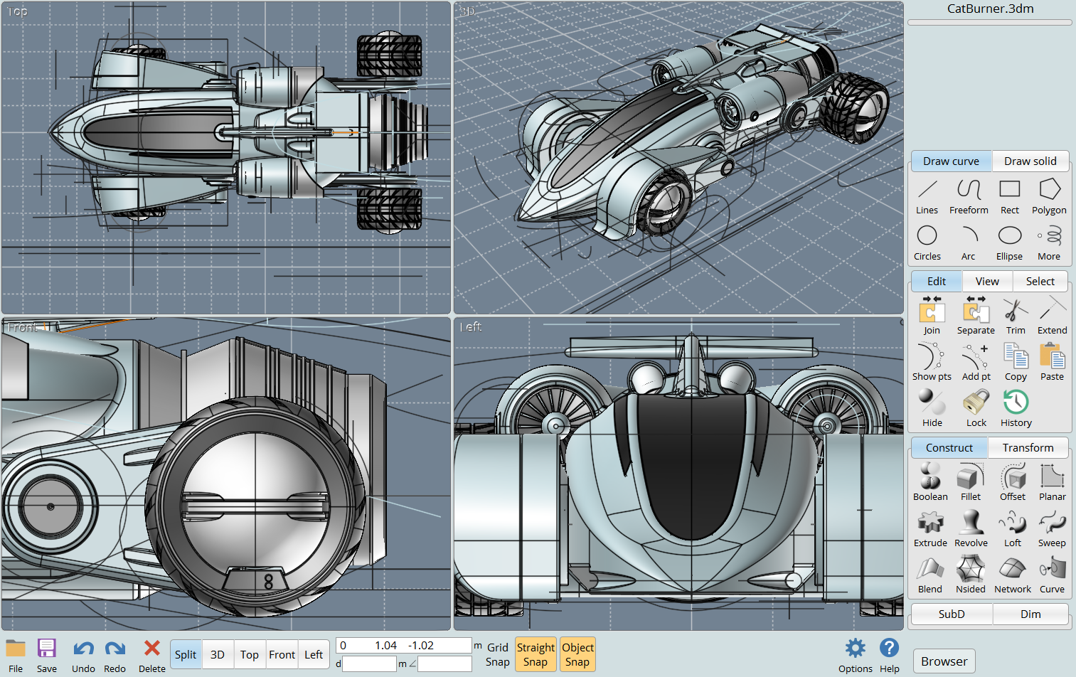 conversion method, available on the side pane under SubD > Create > From file. This allows you to open an .obj file that contains a sub-d control polygon cage and have it converted to a high quality NURBS object in MoI. This enables a hybrid workflow where you can make a base surface for an object in a sub-d modeling program and then bring it into MoI to continue working on it with CAD tools.