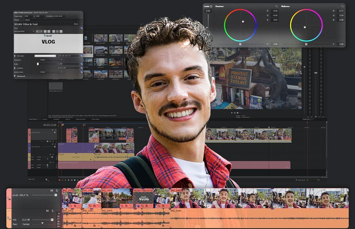 Vegas Post is the complete package for video editing, motion graphics, image composition, live streaming, and sound design.